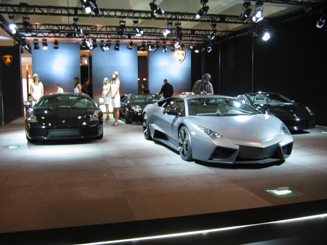 Once again, the Los Angeles Auto Show has new dates. This year it runs November 16 - 25, 2007. Automobile Lamborghini S.p.a. used this opportunity to debut their sold out 1.4 million dollar Reventon. Only 20 of this very rare edition will be built and they were sold to select cliental. Stephan Winkelmann presented the car to the press on Thursday November 15th during the Press Preview days. Also on display was another sold out limited edition, the Lamborghini Gallardo Superleggera. A Gallardo Spyder and Lamborghini Murciélago LP640 Roadster rounded out the display. Download and view the Los Angeles Auto Show press release here.